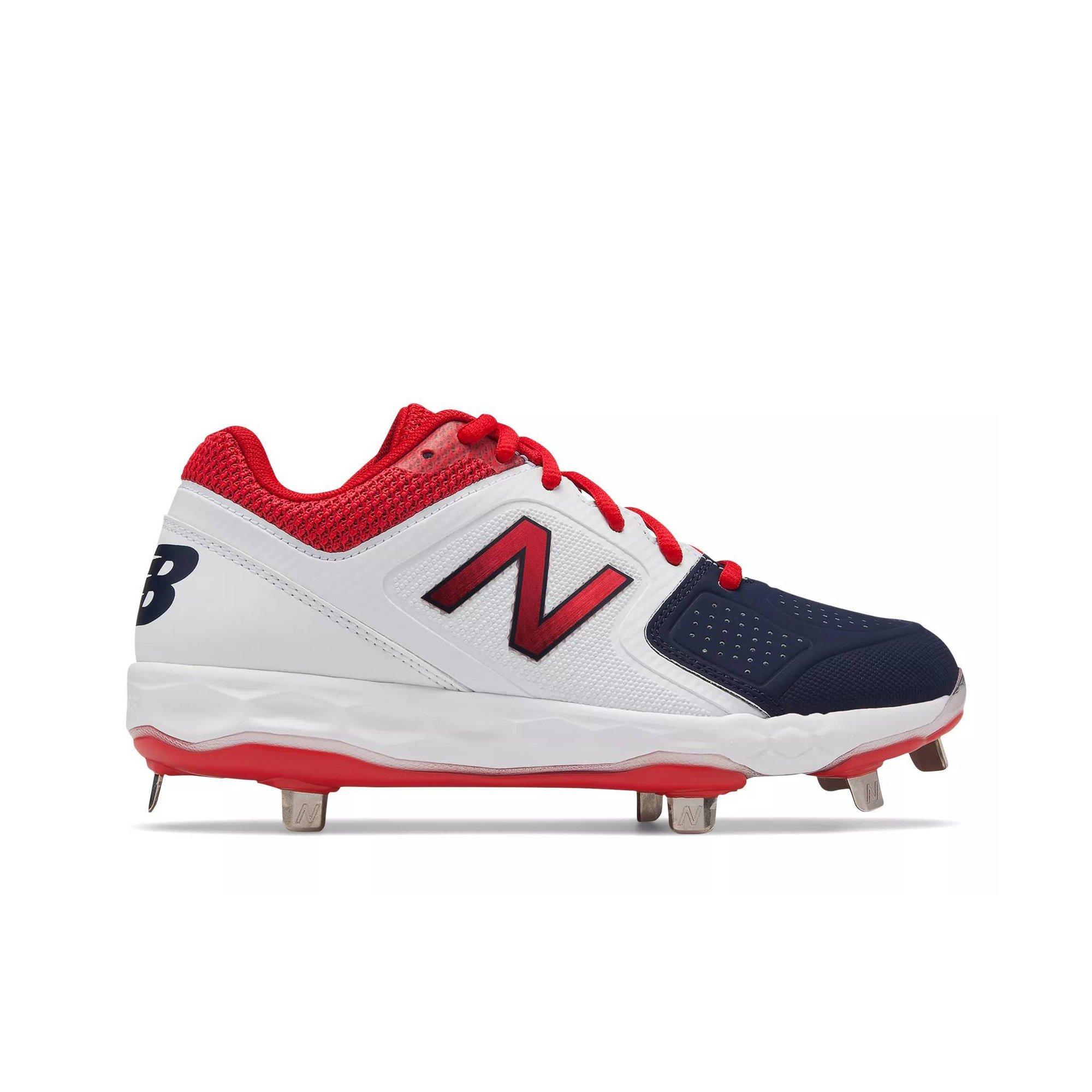 Red White And Blue New Balance Metal Cleats : New Balance Low Cut 4040v4 Metal Baseball Cleat Mens Shoes Red With White Walmart Com Walmart Com - Unfortunately, we cannot accept returns on custom shoe orders.. The largest database of new balance baseball cleats for men and women with more than 2 styles. Bundle new balance navy/grey and red/white metal cleats size 14. New balance t3000v4 metal baseball cleats. Black blue green red white clear selection. The new upper includes a 3d woven saddle combined with a footplate to help support.